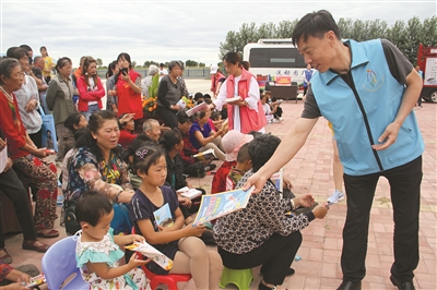 本报讯(韩晓楠 于晓芳)7月25日,镇赉县新时代文明实践中心的骨干志愿者来到建平乡民生村,开展“新时代文明实践大篷车”活动。