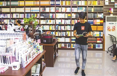 7月29日,学生在枣强县新华书店阅读书籍。