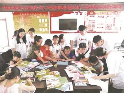 呵护留守儿童,授业解惑。实践团队的学生积极与留守儿童开展互动交流,结合自己的亲身经历,当起了小老师,在学习方法、学习内容、兴趣爱好等方面现身说法,为村里的孩子们鼓劲加油,上了一堂别开生面的人生课程。“你也喜欢看《世界未解之谜》啊,大姐姐小时候也喜欢看,你好好学习,长大了和姐姐一起探索世界的秘密好不好?”“好!”……整个互动过程充满欢声笑语,孩子们的脸上洋溢着快乐。大学生们还向留守儿童捐赠了科普书籍,以适当的方式对孩子们在学习生活中可能出现的心理问题进行疏导,激励他们积极进取,奋发向上,树立远大理想,追求美好人生。