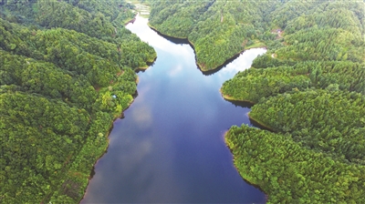 这是8月7日无人机拍摄的重庆石柱太阳湖景色。