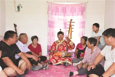 通榆县包拉温都蒙古族乡五道营子村蒙古族老人韩都冷是一位蒙古族民歌手,他不仅能用纯正的蒙古语演唱经典的科尔沁民歌,还自己创作了上百首具有浓郁民族和地方特色的民歌,每逢节假日和农闲时节,他都会为乡亲们演唱。由于他为传承蒙古族民歌所作的努力,韩都冷被白城市政府评为“白城市非物质文化遗产蒙古族民歌传承人”。 陈宝林摄