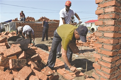 今年年初以来,洮北区围绕脱贫攻坚这条主线,充分利用农村危房改造这一惠民政策,紧紧抓住当前施工黄金期,倒排工期、挂图作战,全力以赴推进农村危房改造工作,确保早日让贫困群众住上“放心房”“满意房”,提升贫困群众幸福指数。图为德顺蒙古族乡德顺村危房改造施工现场。 王维俊 本报记者张殿文摄