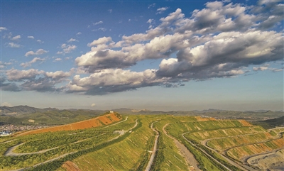 这是唐山市丰润区王官营镇已修复的马头山废弃矿山(8月30日无人机拍摄)。