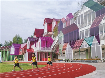 当日,浙江省杭州市淳安县富文乡中心小学迎来开学典礼。富文乡中心小学坐落在淳安县富文乡富文村的青山翠谷中,2016年被列为杭州市农村小规模学校整体提升综合改革项目试点学校,2019年2月20日改建后全面投入使用。该学校拥有阁楼城堡造型、五彩斑斓的校舍,被网友誉为“最美乡村小学”。学校目前有6个班级,近110名学生和20多名老师。新华社记者徐昱摄