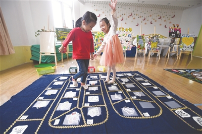 9月4日,孩子们通过趣味游戏学习垃圾分类的知识。