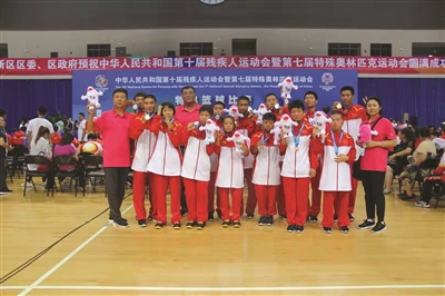 在前不久结束的全国第十届残疾人运动会暨第七届特殊奥林匹克运动会上,代表吉林省参加男女篮球比赛项目的通榆县培智学校篮球代表队的13名运动员,分别获得个人技术金牌2枚、男篮银牌和女篮铜牌的傲人成绩。此次运动会,共有来自全国31个省、自治区、直辖市及新疆生产建设兵团、香港特别行政区、澳门特别行政区的35个代表团、6121名运动员参赛。