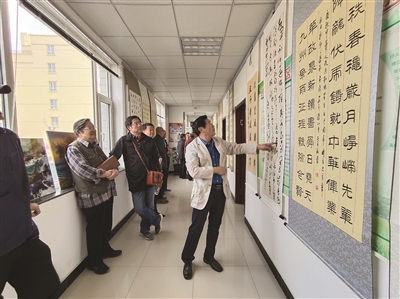 为庆祝新中国成立70周年,日前,白城经开区幸福街道办事处携手白城雅集轩共同举办了庆国庆专题书画巡展。本次活动,共展出60余件书画作品。这些作品以歌颂祖国、赞美家乡为中心,大力弘扬社会主义核心价值观,表达了热爱祖国、热爱家乡的挚热情怀。本报记者薄秀芳摄