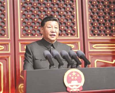 习近平在讲话中指出,70年前的今天,毛泽东同志在这里向世界庄严宣告了中华人民共和国的成立,中国人民从此站起来了。这一伟大事件,彻底改变了近代以后100多年中国积贫积弱、受人欺凌的悲惨命运,中华民族走上了实现伟大复兴的壮阔道路。70年来,全国各族人民同心同德、艰苦奋斗,取得了令世界刮目相看的伟大成就。今天,社会主义中国巍然屹立在世界东方,没有任何力量能够撼动我们伟大祖国的地位,没有任何力量能够阻挡中国人民和中华民族的前进步伐。