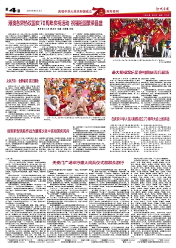 新华社北京10月1日电(黎云 尹威华)松枝绿、浪花白、天空蓝、藏青黄、橄榄绿,在阅兵徒步方队中,女兵方队首次以挂枪形式,全新混合编组参加国庆阅兵,成为阅兵中引人注目的五彩方阵。这也是武警部队女兵首次参加国庆阅兵。