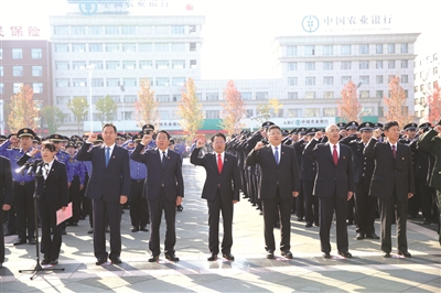 市委书记庞庆波、市长李明伟、市人大常委会主任葛树立、市政协主席张馨等市四个班子领导,市检察院检察长,市人大常委会、市政府、市政协秘书长和市直机关干部等,齐聚市民广场参加升国旗宣誓仪式,激发全市广大干部爱国热情,深刻领会“不忘初心、牢记使命”的重大意义,激励广大干部以饱满的工作热情、奋进的工作状态,推动全市各项工作实现新的跨越。