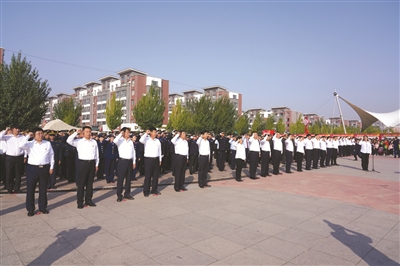 本报讯 10月1日,镇赉县举行大型升国旗宣誓仪式,以此铭记历史、昭示未来、不忘初心、继续前进。