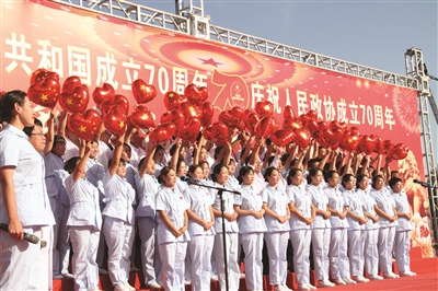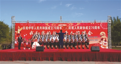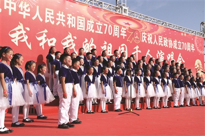 本报讯 华夏大地喜讯传,举国欢歌庆国庆。9月26日,由中共镇赉县委、镇赉县人民政府、政协镇赉县委员会主办,中共镇赉县委宣传部、镇赉县文广旅局承办,镇赉农村商业银行协办,县直党政机关18支代表队参演的“我和我的祖国”千人演唱会圆满落幕。镇赉县主要领导和数千名在场观众、镇赉广播电视台5万多位直播观众共唱祖国赞歌。