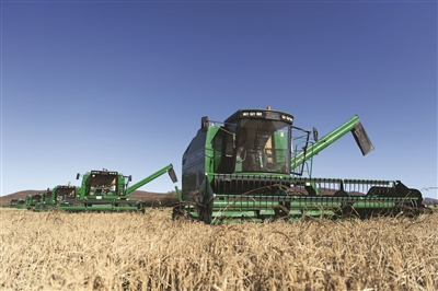 10月12日,在黑龙江农垦建三江管理局勤得利农场,种植户驾驶机械抢收水稻。