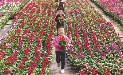 近年来,河北省衡水市武邑县积极调整农业产业结构,瞄准京津花卉市场需求,引导当地企业、合作社发展特色花卉种植产业,并将农业资源与乡村旅游相结合,助力乡村振兴。目前全县共有花卉企业、合作社20多家,年产鲜花100多万盆。 新华社记者李晓果摄
