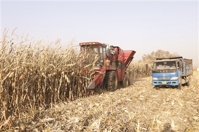 今年,洮南市洮府乡万福村四社村民孙国栋种植了15公顷玉米,预计每公顷可收获玉米12000公斤。图为孙国栋正在收割玉米。 本报记者王野村摄
