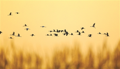 据了解,莫莫格国家级自然保护区是典型的内陆湿地与水域生态系统类型保护区,适宜鹤鹳类等水鸟栖息的沼泽湿地。多年来,莫莫格国家级自然保护区千方百计改善这里少雨、干旱的自然环境,努力为候鸟打造良好的栖息驿站。今年,保护区加大了对候鸟的保护力度,引水入莫、退耕还湿、全面禁牧、加大巡查等一系列举措高效实施,使莫莫格保护区真正成为了水乡泽国、鸟的天堂。近两年,白鹤在镇赉停歇的位置比较分散,这说明各地生态环境改善明显,适宜珍稀候鸟栖息的地带已经越来越多。 (潘晟昱/摄)