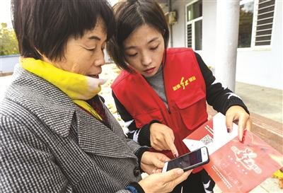 11月10日,河北省廊坊市广阳区新源道街道金桥社区居民在社区网格员的帮助下通过扫描 “新源红驿站”二维码进行注册。