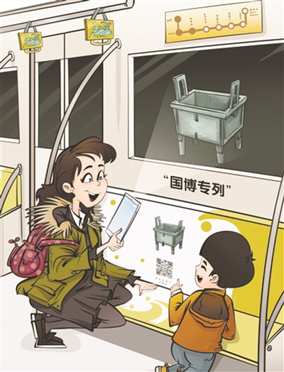 近日,“遇见国博——5000多年中华文明在你眼前”中国国家博物馆专列在北京地铁一号线投入运营。除了四羊方尊、彩绘陶兵马俑等馆藏文物的生动介绍,“国博专列”还通过播放主题短视频、让乘客扫码进入H5等方式,帮助乘客了解展览内容,在日常生活中感受“文物的魅力”。