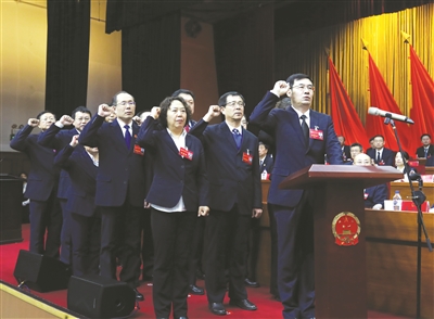 大会还举行了宪法宣誓仪式,庞庆波主持仪式。