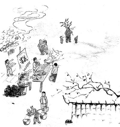 年糕,主要用蒸熟的米粉经舂捣等工艺加工而成,因其制于过年之前而得名。我国早在《周礼》中就有“糗饵粉餈”的记载。东汉学者郑玄考证,“饵”是用稻米粉、黍米粉合蒸而成的,实际是一种糕。汉魏时期,已出现“蓬饵”等糕的名品。隋、唐之时,糕的品种更多,有“水晶龙凤糕”“紫龙糕”等。明代李时珍《本草纲目》载:“糕以黍、糯合粳米粉蒸成,状如凝膏也。”实际上,年糕之称始见于明代刘侗的《帝京景物略》:“正月元旦……啖黍糕,曰年糕。”清代时,年糕品种已甚丰,清人顾铁卿在《清嘉录》中载:“黍粉和糖为糕,曰年糕。有黄白之别。大径尺而形方,俗称‘方头糕’;为元宝式者曰‘糕元宝’,黄白磊砢,俱以备年夜祀神,岁朝供先及馈贻亲朋之需。其赏赉仆俾者,何形狭而长,俗称‘条头糕’,称阔者曰‘条年糕’……春前一二十日,糕肆门市如云。”