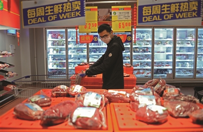 1月29日,市民在长沙一家大型超市内选购肉类。
