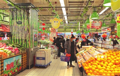 2月1日,记者从市区各大超市了解到,米面粮油、蔬菜和肉类库存与采购供应充足,保质保量保价,超市货架上各类商品与平时一样,依旧琳琅满目,摆满了货架。