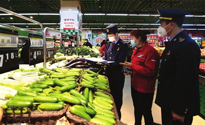 2月3日,石家庄市桥西区市场监督管理局工作人员对一家超市销售的蔬菜进行价格检查。