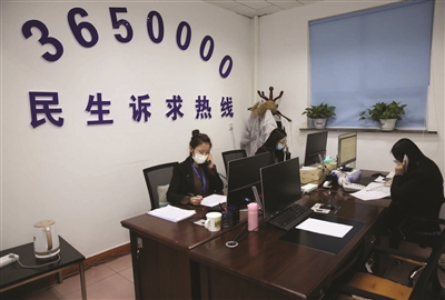 (图十二)白城市督查指挥中心“一个电话解难题”民生热线服务平台的工作人员正在接听市民电话咨询。 本报记者马彬摄