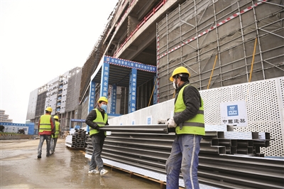 2月19日,中建八局施工人员在位于安徽合肥的项目工地上施工。