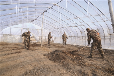 在疫情防控特殊时期,全市上下一手抓防控、一手谋发展,各地备春耕工作均有序进行。图为镇赉县大屯镇腰杭村村民在整理水稻育秧大棚。 王凯摄