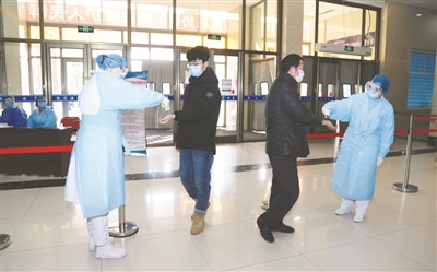 1月25日,接到上级紧急命令的白城市医院领导班子立即召集医院各职能科室、部门中层干部在六楼会议室开会,传达了市、区党委、政府与卫生健康部门关于白城市暨洮北区疫情防控领导小组有关指示精神,迅速成立了医院疫情防控领导小组,由院长王盾担任总指挥、副院长陈雪侠担任副总指挥,适时推出了《白城市医院新型冠状病毒感染的肺炎诊疗及防控应急预案》,明确分工,严格管控,责任到人,挂牌督战,大力做好医院疫情防控的各项备战工作。在该院综合门诊大楼2个出入口设立体温监测点,暂时关闭医院其它出入通道,严格执行“全员体温监测,进院必测”的方针,守好医院防控每一道防线。对发热,有呼吸道症状,有流行病学史的患者,引导到预检分诊处登记,并由护士陪护到发热门诊进行筛查,将疑似发热患者收入到隔离病房,按照“早发现、早报告、早隔离、早诊断”的原则,对病人进行管理和有效救治,利用白城市医院官方微信公众平台,转发市医院发热门诊联系电话:0436—3537278(办公室)、3537273(诊室)及医院疫情防控有关规定,确保疫情防控工作顺利开展。