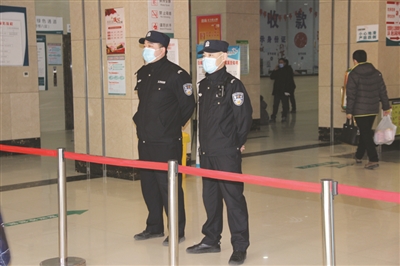 白城市医院为坚决打赢疫情防控人民战争总体战阻击战,加强保卫科力量。全科配备保卫人员11人,全员上岗,24小时在院内外轮班值守,“点面结合,内勤与卡点呼应”,按照安保防控要求分类对全院进行守护。