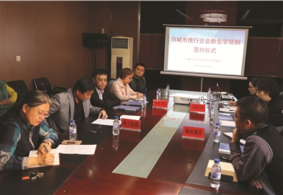 2018年4月,我市举办了“白城市职业院校校企合作暨吉林梅花氨基酸有限责任公司合作基地校签字仪式”,现场校企签约27个。2018年12月,白城职院与吉林梅花氨基酸有限责任公司签署了《订单培养协议》,开启了校企合作、产教融合序幕。成功举办了800多名学生参加的白城职院吉林梅花择业双向交流会,吉林梅花460名新上岗员工在白城职院进行了岗前业务培训。白城市第一职业高中的酒店服务与管理专业与白城鹤翔宾馆签署了产教融合协议,开展了现代学徒制试点。白城一职与海尔集团订单培养冠名班2019年招生37人,备受社会关注。截至2019年11月26日,全市7所职业学校的与白城中一精锻股份有限公司等31户域内外企业建立了校企合作关系,签订了《合作协议书》,为学生教学、实习实训、就业奠定了基础。