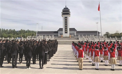 去年十一前夕,为庆祝中华人民共和国成立70周年、中国少年先锋队建队70周年,共青团白城市委在烈士陵园组织开展“峥嵘七十载 筑梦新时代”特别主题队日活动。图为白城师范学院团员代表、白城毓才实验学校少先队员代表在聆听国旗下的演讲。