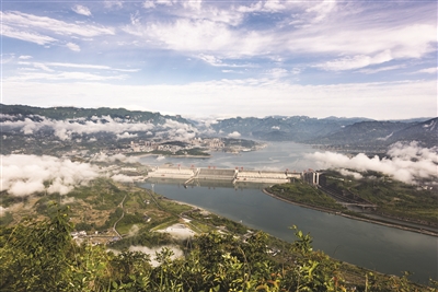 一场大雨过后,三峡大坝上空云雾蒸腾,美不胜收。 新华社发(郑家裕摄)