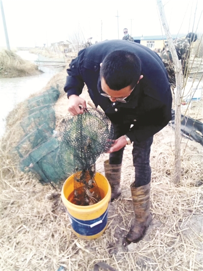 本报讯(赵南林 王志华)日前,在镇赉县莫莫格蒙古族乡元宝吐村庆江种养农民专业合作社扣蟹培育越冬池塘旁,社员们正在用大网和地笼捕捞扣蟹,扣蟹从越冬池捕捞上来,装到桶内,直接销售给稻田养殖户,为当地稻田综合种养提供优质蟹苗。扣蟹越冬培育获得成功。该合作社2019年被确定为省级稻田扣蟹养殖示范基地。
