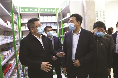 在洮北区同泰药店,李明伟在工作人员的引导下主动测量体温和扫码,并详细了解目前药店客流量、药品销售、人员登记等情况。李明伟强调,行业管理部门和市场经营主体一定要提高防范意识,切实把常态化管控的规范流程和具体要求宣传好、落实好,务必管到位、无漏点。要严格落实“行程码”“健康码”相关要求,加强对入店人员的测温、扫码,形成常态化管理机制。要严格按照疫情防控管理要求把好购药关、登记关,确保信息真实有效。要加强口罩、消杀用品等防疫物资市场供应,满足群众正常消费需求。工作人员要加强自身防护,定期开展消杀处理,保持安全经营环境。