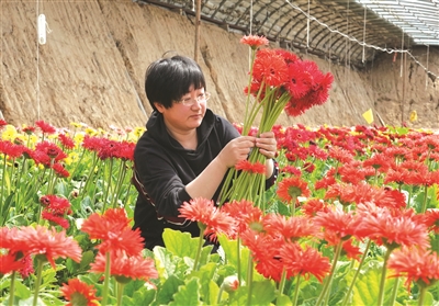 近年来,河北省滦南县政府引导农民发展非洲菊、康乃馨、百合、玫瑰等花卉规模化种植,促进农民增收。据介绍,目前滦南县年产花卉1000多万株,鲜花经济成为助力乡村振兴的有力抓手。 新华社记者杨世尧摄