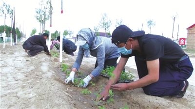 前不久,我们走进镇赉县黑鱼泡镇棉西村,看到平坦的村屯硬化路两旁新栽植的绿化树木整齐划一,枝叶繁盛。几名村民戴着口罩,分散在树下,忙着栽种花苗,挖坑、种苗、覆土、浇水,一气呵成。在一番热火朝天的劳动后,15000株青翠欲滴的花苗就在棉西村后珲春庙屯主路两侧安下了家。
