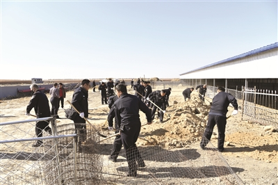 东风村47.6%的土地不同程度沙化,可用耕地仅为413公顷,人均不到5.1亩。对此,帮扶民警瞄准东风村千余垧天然草原,大力推进发展畜禽养殖业。脱贫攻坚工作组积极争取省市支持,划拨资金建设了东风村牧业小区,建设养殖圈舍10栋,总造价370万元。目前,牧业小区有羊、马、驴等畜禽2000余只。帮扶民警还借助“通榆红牛”大型养殖基地,引进“西门达尔”等品种肉食牛60头,着力提升养殖规模。