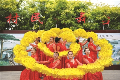 6月18日,村民在河北省滦州市滦城街道范庄村新时代文明实践站的村民舞台上排练舞蹈。 新华社记者牟宇摄