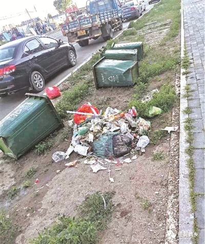 目前,我市正在大力开展不文明行为整治工作,对交通秩序、公共环境卫生、公共设施保护、文明礼仪等方面的不文明行为进行曝光,以引导广大市民群众自觉抵制不文明行为,培育讲文明树正气的新风尚。图为市区四季华城A区南门未清理垃圾。