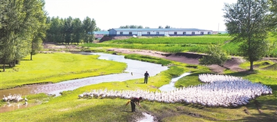 近年来,洮南市万宝镇三发村、碱土村在镇党委、政府的支持下,依托自然优势,全力发展大鹅养殖产业,取得了良好的经济效益,绿草如茵,白鹅如云,在当地形成了一道亮丽的景观。本报记者李晓明摄