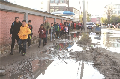 2006年前后,洮北区明仁南街道路坑洼不平,雨天深坑积水一周都不干涸,学生们遇到积水路段往往靠墙根猫腰侧身通过“危险”地带,一不小心就可能踏入水坑。老城改造后,昔日的臭水坑变成了宽阔整洁的人行道,家长再也不用为孩子上下学担心了。本报记者王野村摄