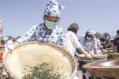 当日,山西省临汾市安泽县举办斗茶文化主题活动,来自全县各乡镇的100余名选手在现场进行制茶技艺比赛。安泽县野生连翘资源丰富,近年来,当地积极发展以连翘茶为主的药茶产业,通过全民技能培训帮助群众掌握制茶技艺,带动群众增收致富。 新华社记者杨晨光摄