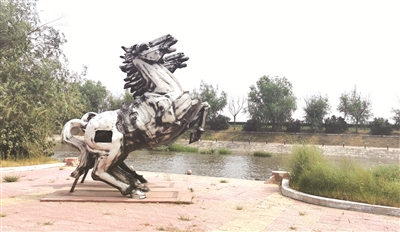 8月3日,在白城市运河带状公园内,有两匹骏马雕塑被游客严重破坏,前腿被硬生生掰掉,骏马变成了“瘸马”。希望游客注重自身行为美,文明旅游。 本报记者李晓明摄