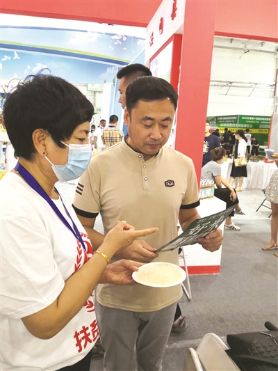 镇赉县庆江种植养殖农民专业合作社种植的“梦香湾”大米,在正在举行的长春农博会上受关注。该品牌大米全程严格以有机农作物规范种植,保证了口感和品质,曾在第20届全国绿色食品博览会上获金奖。图为农博会上合作社负责人向参观人员介绍产品。 孟庆江摄