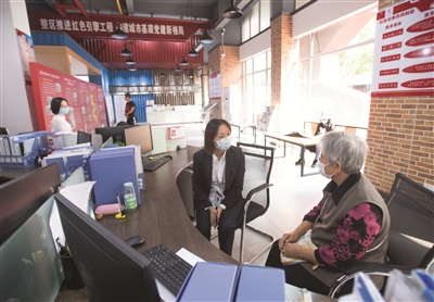 9月18日,武汉青和居社区服务中心工作人员为社区居民办理相关事宜。