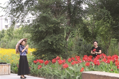 前不久,在市区科普公园记者看到,两名游客为拍照留念将公园内盛开的鲜花摘下。希望游客爱护花草,留下美丽倩影的同时能够做到文明出游。 本报记者王野村摄