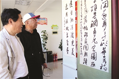 9月24日,听说白城经开区幸福街道办事处又要举行书画展了,辖区居民纷纷前来参与活动。年过六旬的居民崔忠堂说,自2015年幸福街道办事处和白城雅集轩书画院联合搞文化活动以来,他是年年不落,逢活动必参加。